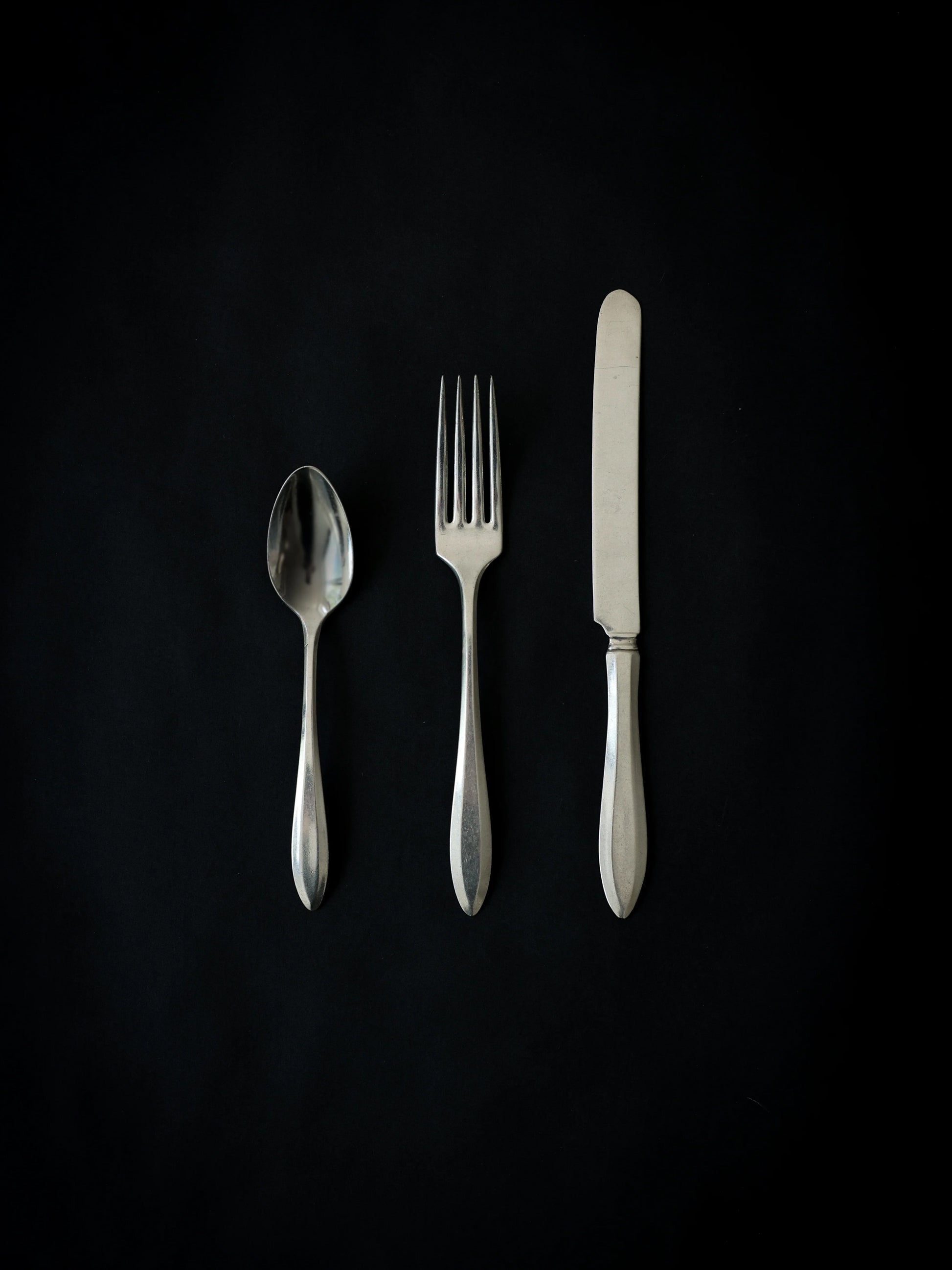 Vintage cutlery set with a reductionist form. The petite size of this set makes it perfect for travel.