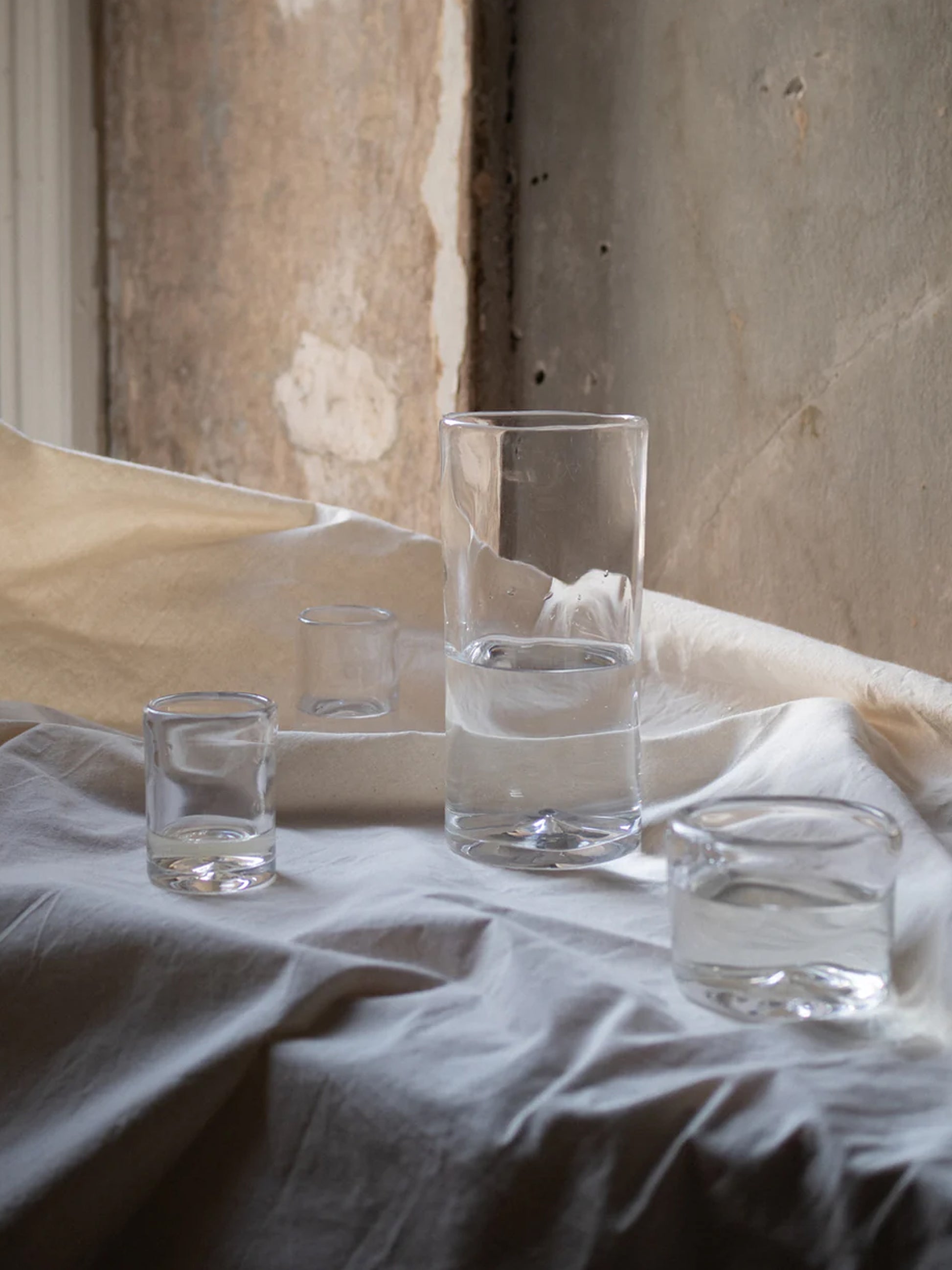 Designed by Copenhagen-based Studio 0405 for FRAMA, the 0405 Small Glass Set is handcrafted in Europe using heavy, highly-durable glass, and expertly shaped by a glassblower to create an organic and tactile experience.